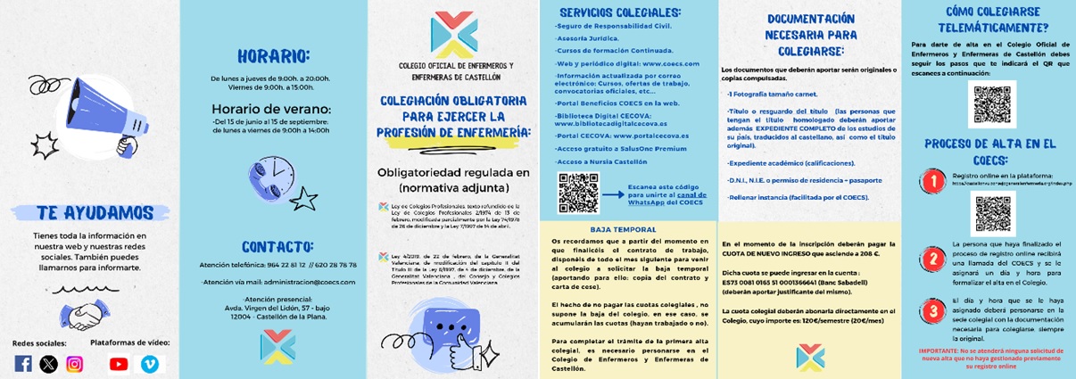 Folleto de Servicio del Colegio Oficial de Enfermeros y Enfermeras de Castellón