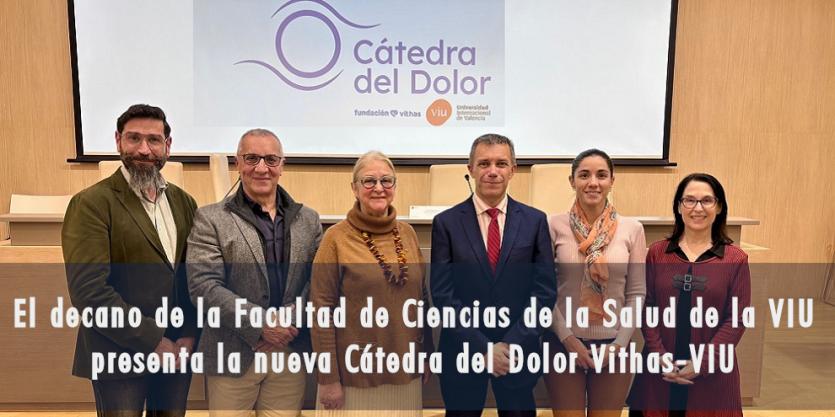La sede de la Universidad Internacional de Valencia (VIU) ha acogido la presentación oficial de la nueva Cátedra del Dolor Fundación Vithas-VIU, acto inciado por el decano de la Facultad de Ciencias de la Salud de la VIU, Vicente Gea. La iniciativa ha estado destinada a transformar la formación, la investigación y las soluciones en torno al dolor crónico, uno de los mayores retos sanitarios actuales, y ha contado con la presencia del presidente del CECOVA, Juan José Tirado, y de la presidenta del COENV, Laura Almudéver.