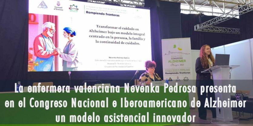 La enfermera valenciana Nevenka Pedrosa, coordinadora de enfermería la unidad de ensayos clínicos de neurología del Hospital Doctor Peset, ha participado como ponente en el XI Congreso Nacional y XV Congreso Iberoamericano de Alzheimer, organizado por CEAFA del 5 al 8 de noviembre en Ibiza. Su intervención se ha enmarcado en la sesión “Cuidado, humanización y acceso a nuevos tratamientos”, donde ha presentado una propuesta disruptiva de atención integral al Alzheimer centrada en la figura de la enfermera como eje del acompañamiento.